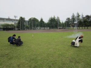 5月22日(土)にモデルロケットの作製を行い、5月27日(木)に打ち上げを行いました。点火がうまくいかないロケットや点火後に分解するロケットなどもありましたが、無事打ち上げを行うことができました。